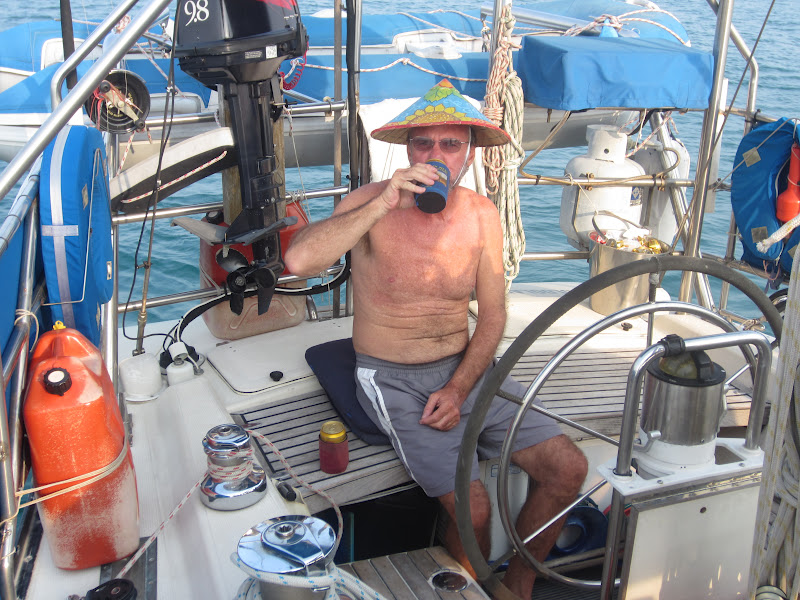 The next morning we awoke to unexpected sunshine so we headed off on the 60nm trip to round the Top of Borneo. It was a lovely day but with only light wind from directly behind which made it impossible to sail even with the new sail as we were rolling from gunwale to gunwale most of the way. Once we rounded the top the swell eased and the wind was on the beam so we unfurled the UPS and took off for the last 5 miles and sailed to our overnight anchorage. It was my birthday so a couple of well-earned drinks were downed while listening to a bit of rock and roll. A very pleasant day.